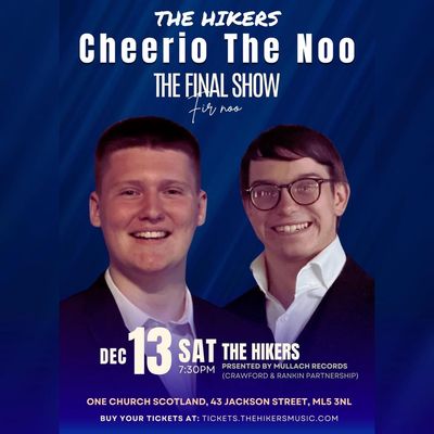 Ladies and Gentlemen, one and all, The Hikers and Cameron Publishers are delighted to announce their latest show, The Hikers - Cheerio The Noo. After 4 years together, and 3 years of performing consistently, The Hikers have decided it is now time for a break. This will be their final show together for a while as the boys take a hiatus to focus on their lives. The concert will be a reflection on their time together as a band and on their concerts and shows over the last few years. During the show, you will see photos and videos, hear stories, and learn about how Alex and Cameron came to be known as The Hikers. We invite you to sing along, clap along, and just have a good time together with the rest of our fantastic audience. The concert will take place on Saturday the 13th of December 2025. We hope you can join us then as we prepare to say, “Cheerio The Noo.”